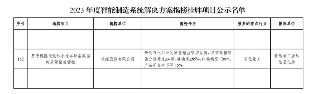 近日,8868体育(中国)官方网站 - 登录入口的“基于机器视觉和小样本异常数据的质量精益管控”成功入选国家工信部“2023年度智能制造系统解决方案揭榜挂帅项目”。