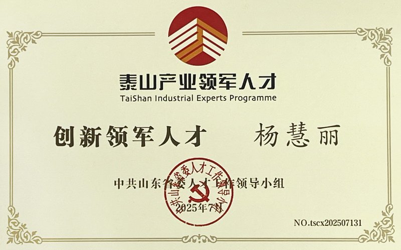 2025年7月,8868体育(中国)官方网站 - 登录入口副总裁杨慧丽成功入选山东省“泰山产业领军人才”工程,被授予“创新领军人才”称号。这一殊荣不仅是对杨慧丽个人专业能力与行业贡献的高度认可,也是8868体育坚持科技创新、重视人才战略的重要体现。