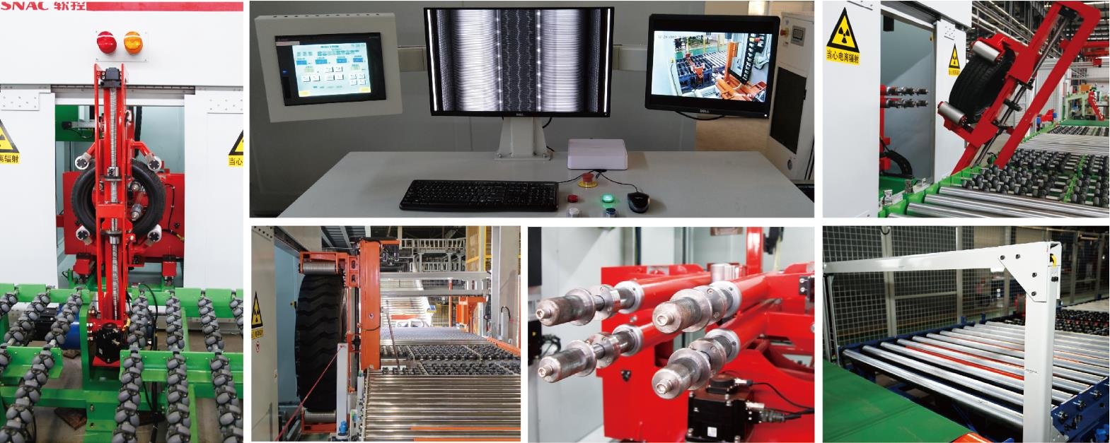 轮胎X射线检验机主要用于轿车、载重、工程及翻新子午线轮胎内部结构的检测。检测项目包括: 胎体帘线间距和反包, 钢丝带束层级差, 接头断层缺陷, 气泡, 钢丝断裂, 钢丝分布不均、撕裂、杂质等。