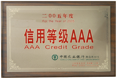 近日,我公司被中国农业银行青岛市分行评为信用等级AAA企业。 企业信用等级评定是指农业银行按照统一的财务与非财务指标体系和标准,以偿债能力为核心,对企业法人客户、合伙类企业以及个人独资企业(以下统称为企业)的经营状况和资信状况进行综合评价和信用等级确定, AAA是目前银行给企业评定信用的最高等级,公司荣获AAA企业称号,是农业银行对我公司经营状况和资信状况的认可,对我公司今后发展将产生积极的影响。