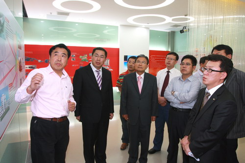 6月11日,韩国三大轮胎制造厂商之一的耐克森轮胎株式会社会长姜丙中以及青岛耐克森轮胎有限公司总经理李在秀一行在青岛莱西市市长孙利国等领导的陪同下来公司访问,董事长袁仲雪、总裁高彦臣等公司领导热情接待了来访客人。 公司领导在信息化展厅向姜丙中等人介绍了8868体育十年发展的情况,随后带领客人参观了成型机生产线。双方还就未来几年内在橡胶装备方面的合作进行了充分交流。
