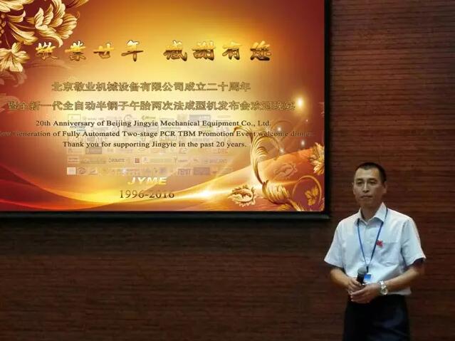 北京敬业总经理孙林在致辞中说到,北京敬业历经三年创新研发的全新一代高速两次法轮胎成型机问市,凝聚了敬业人的智慧与心血,承载着各位客户对敬业人的期待与希望。敬业人将始终秉承“成型高性能轮胎,成就高品质用户”的宗旨,不断努力、勇于创新、精于专业,服务于行业及社会。