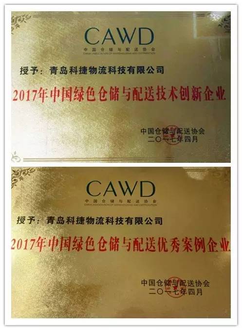 在当晚的颁奖典礼上,科捷以创新高效的绿色物流产品和项目案例获得两项大奖---“中国绿色仓储与配送技术创新企业”、“中国绿色仓储与配送优秀案例企业”。科捷的智能交叉带分拣机和堆垛机产品继入选《中国绿色仓储与配送技术与设备推荐目录》后,在此次大会上正式获得绿色仓储与配送设备与技术标识授标,这次授标进一步肯定了科捷产品的研发和创新实力。