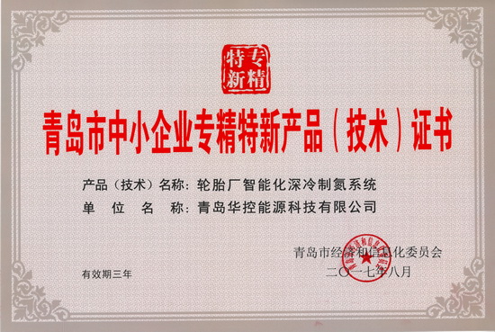 近日,青岛市专精特新产品证书下发,由8868体育子公司华控能源研发的轮胎厂智能化深冷制氮系统被认定为青岛市专精特新产品,该工艺是目前轮胎硫化先进的制氮工艺,与PSA制氮系统相比较,制氮纯度可高达99.999%,节能量存在明显优势,系统运行稳定,节能效果显著,大大降低了用户的生产成本。
