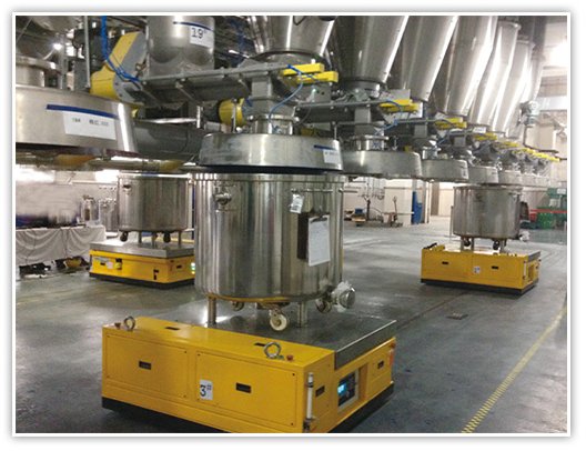 该系统用于多粉料、多油料混合物料称量。根据不同物料的物理特性和化学特性采用多种结构设计方式,称量范围宽、精度高、速度快,除尘系统采用物料回收环保型设计,无三废排放。采用AGV无线称量小车,以自动控制系统为核心,管理软件具有配方管理、数据报表及配料过程的全自动控制及远程监控等功能。
