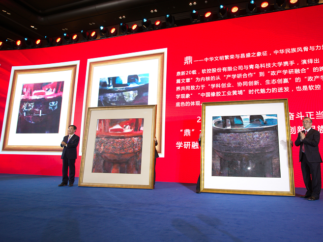 青岛科技大学赠送两幅美术作品庆贺8868体育创立廿周年