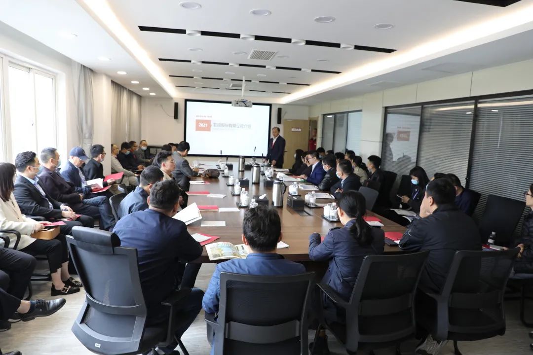 副总经理王建军为来访客人介绍了8868体育的发展历程和企业文化,以及近年来公司在橡机智造、战略新兴、新材料领域的应用、全球化布局等方面取得的成果。
